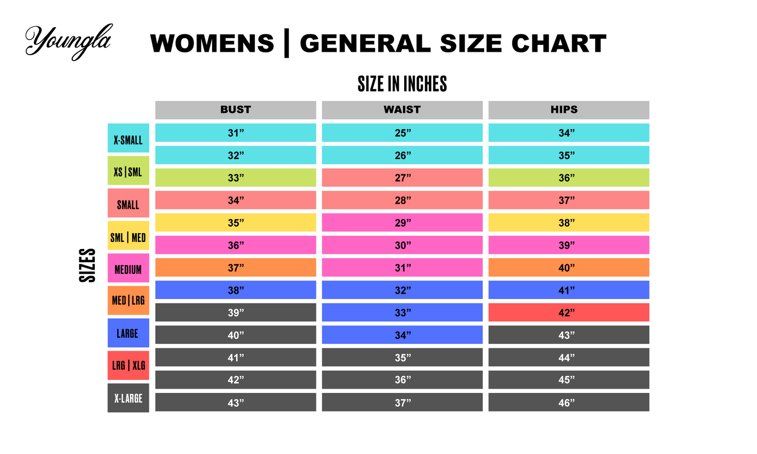 These charts are for reference ONLY and is intended to be a general guide
